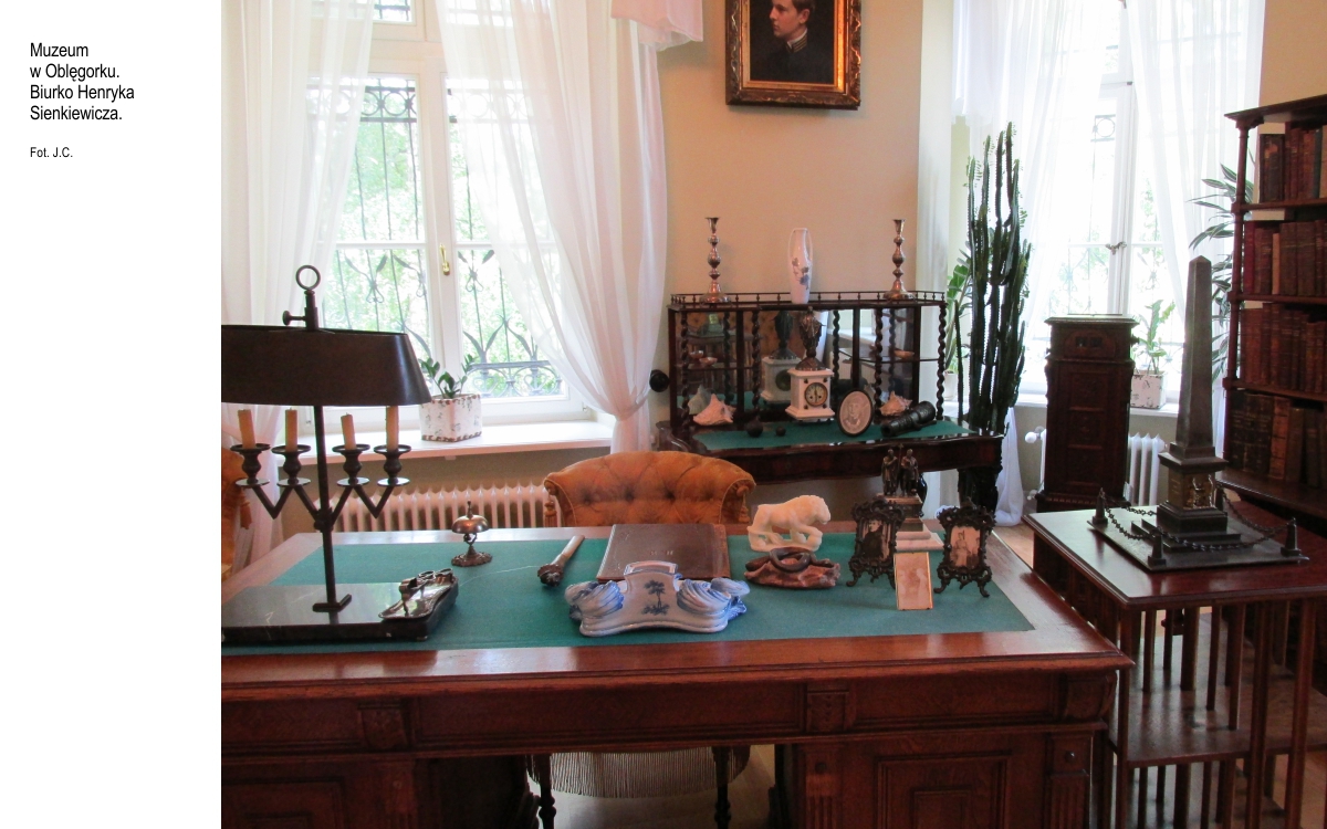 W 1900 roku naród polski zakupił ze składek dworek we wsi Oblęgorek k. Strawczyna i ofiarował go w darze Henrykowi Sienkiewiczowi z okazji 25-lecia pracy literackiej. Dziś w pięknie odnowionym pałacyku znajduje się muzeum. Jest tu dużo pamiątek po nobliście, rzeczy osobistych, mebli, książek, obrazów, trofeów myśliwskich i pamiątek z podróży. Jest mnóstwo najrozmaitszych dowodów uwielbienia (adresy, dyplomy, afisze), dużo autentycznych zdjęć. Sienkiewicz przemieszkiwał tu od czasu do czasu, tu napisał „W pustyni i w puszczy”...
